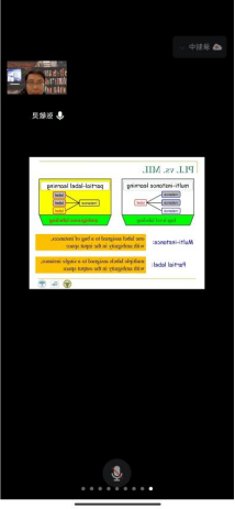 其次,张敏灵教授对现有偏标记学习算法进行总结并介绍张教授指出、“偏标记学习的核心策略是消歧、目前团队主要工作包括三方面,一是特征感知消歧策略,即对训练本中实例的结构化关系进行描述,利用其再特征空间中的相似性来进行标记消岐第二是类别不平衡策略,这其中主要包括数据层面的处理和算法层面的处理,目前团队主要致力于研究基于数据层面的CIMAP处理方法。第三是多标记学习策略,该策略的主要目标是构造多标记预测器,即对特征空间到标记空间里的每一个样本,可以同时预测其多个相关标记。最后张敏灵教授参会师生提供了偏标记学习的相关学术资源