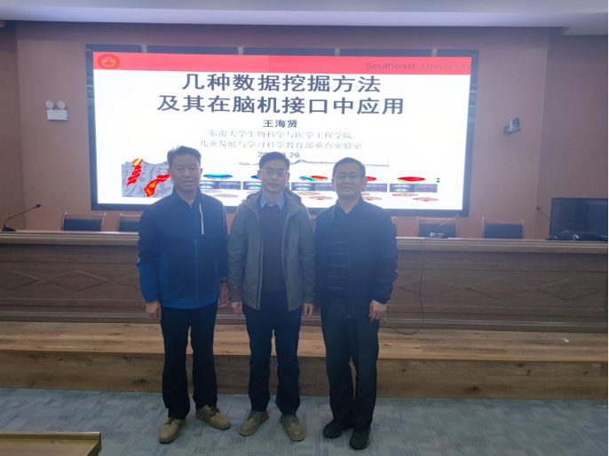 王海贤教授指出,脑机交互研究是对传统计算模式的变革,是智能化的新兴计算模式,科学家可以利用大脑原理,研发新的脑式计算机、智慧型无人决策及控制系统。脑机交互研究在推动新一代计算智能、改变交互方式、保障人类健康、增强国防科技实力等领域具有重要作用。王教授结合其团队研究课题和多个生产应用实例,详细介绍了不同场景下脑机交互中的工作原理,分析了不同数据挖掘方法在其中的应用,并介绍了脑机交互未来的发展前景和方向。报告结束后,成人视频 副院长苏守宝教授、网络通信与工程学院院长田锦教授还与王海贤教授就相关问题进行了请教和讨论,王教授的精彩报告,使参会师生深受启发。