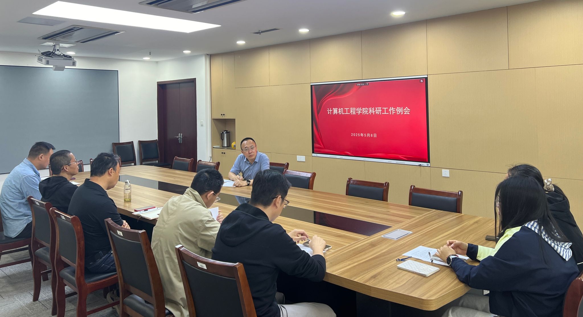 于5月8日在科技楼523召开科研工作例会。近五年引进的博士教师参加本次会议,学院副院长朱俊主持会议。
