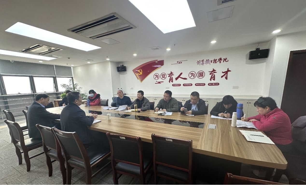 2025年2月26日上午,教务处处长田祥宏、副处长刘旭明莅临我院指导教学工作,院长胡勇、副院长王强、各专业负责人、各系部主任、教务秘书共同参加,重点围绕人工智能通识课程的设置、国一流专业验收工作进展以及人工智能赋能专业建设的未来规划展开深入研讨。