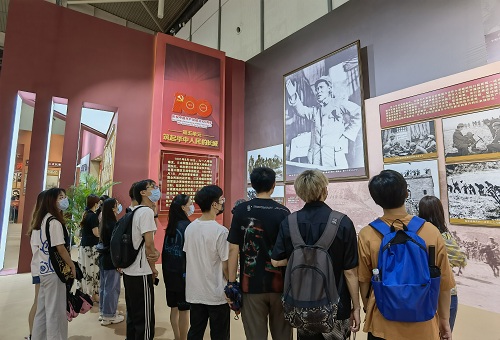 学生党员在学生第一党支部书记周倩如的带领下前往南京国际博览中心,参观“百年征程,初心永恒”——中国共产党在江苏历史展。