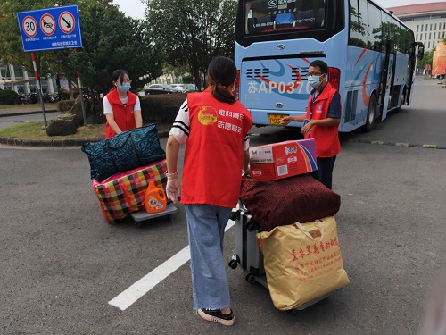 27日一早,教师志愿者们身穿红马甲,精神抖擞开展工作。在校东门口引导新生进校,帮助他们将行李搬运上车。过程中与新生和家长们亲切交谈,回答他们的各类问题、消除他们的不安情绪。在校园中处处可以看到志愿者忙碌的身影、经过他们热情耐心的讲解和指引,2021级新生通过查验通道很快地进入校园、住进宿舍,工作有条不紊,忙而有序。教师红马甲成为迎新现场一道亮丽的风景线。