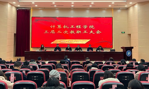 在科技楼报告厅召开了三届二次教职工大会。大会由学院分工会主席汤露主持。