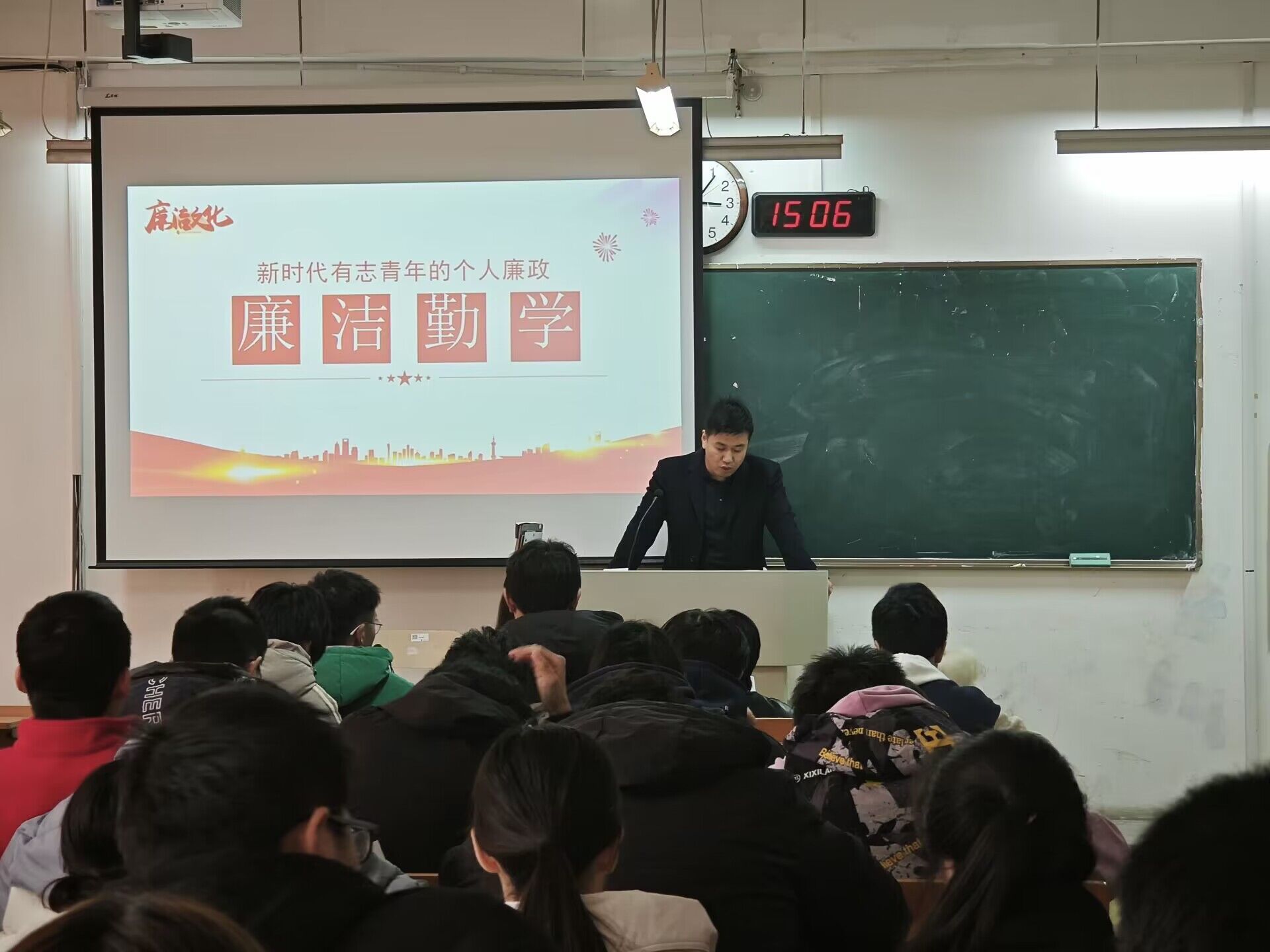 张昊副研究员以“有志青年须练好的三种功”为主题,从练好思想上的“内功”,守住廉洁自律的“防功”,划清公与私的“硬功”三个方面入手,深刻剖析了现阶段大学生中出现的一些不良思潮和不当行为,及其产生原因。通过以案说法引导同学们从政治、经济、名誉、家庭、亲情、健康六个方面学会算好人生的“六笔账”,做到自省自律,廉洁勤学。引用多篇习近平总书记对青年的寄语,鼓励同学们要紧跟时代步伐,树立终身学习的观念。