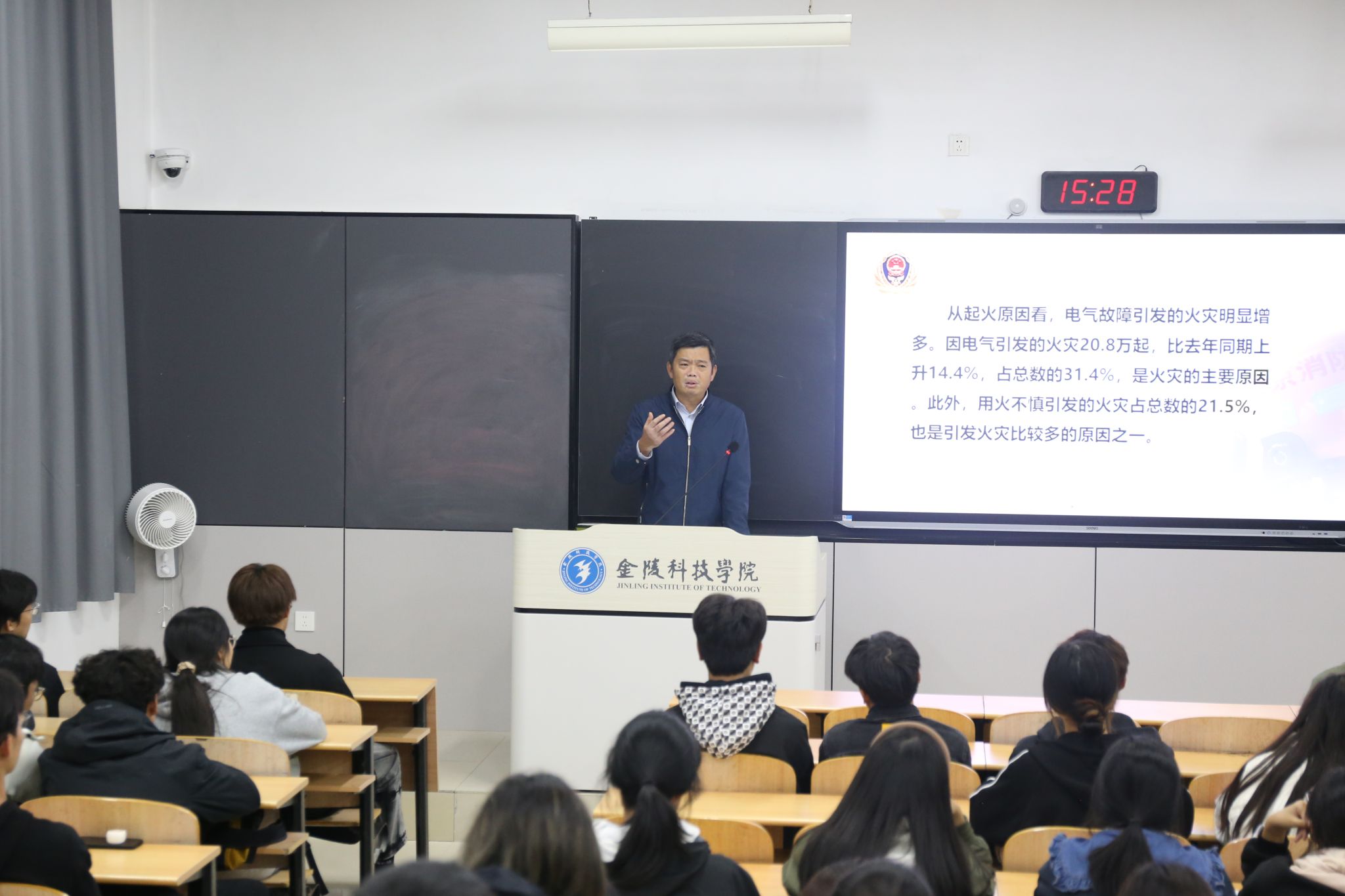 卓士磊结合大量的案例和视频资料,深入浅出的向同学们阐述了消防安全对于个人生命安全及校园和谐稳定的重要意义;详细剖析了火灾的常见成因,传授了火灾发生时的应急处理技巧。特别指出,学生宿舍作为火灾的高发区域,更需严格注意用电安全,严禁私拉乱接电线,要定期开展电器设备排查,确保宿舍安全。