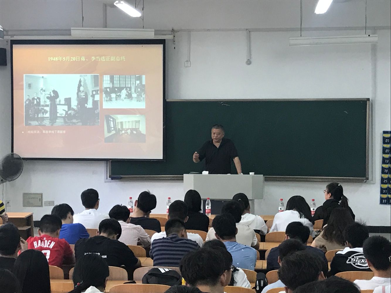 刘刚老师围绕钟山风雨、野火春风、大江飞渡、改天换地、军管文管、豪迈情怀、珍贵资料等几个方面,用一张张珍贵的老照片向同学们讲述了发生在南京、在总统府遗址上的历史住事。