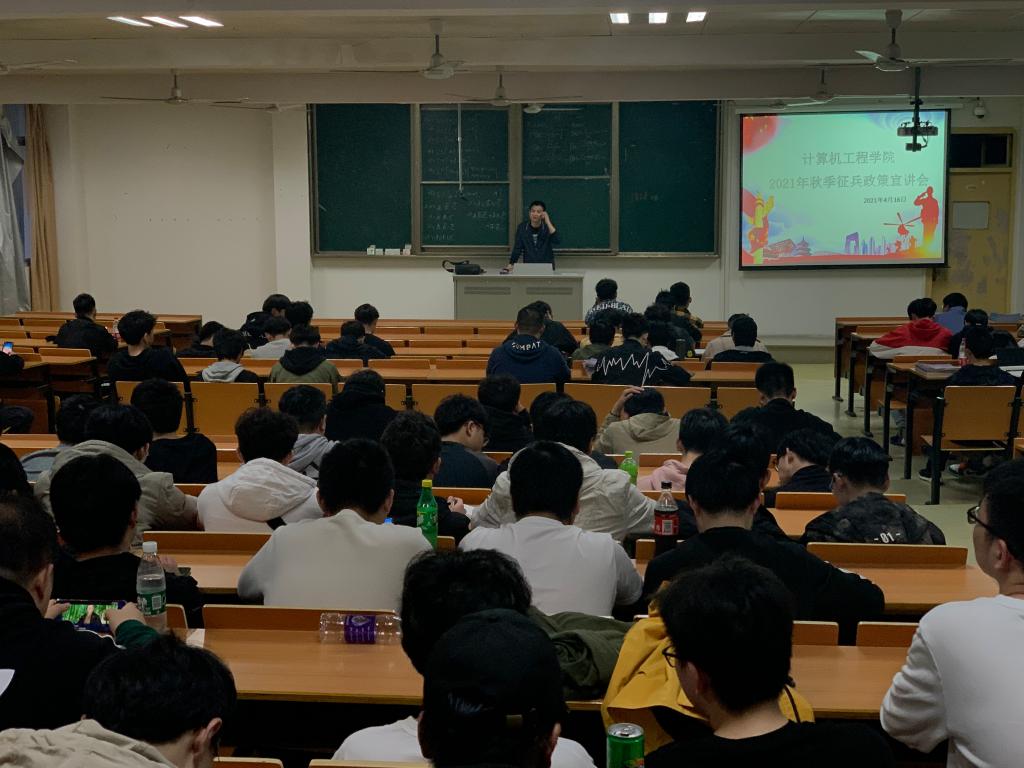 于近日召开了征兵政策宣讲会,由辅导员鲁瑶老师主讲。学院17、18级全体男生参加了会议。