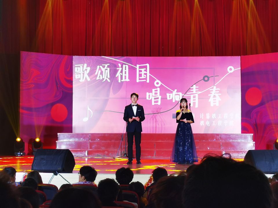 与机电工程学院联合举办“歌颂祖国,唱响青春”诵歌会,12月11日晚在大学生活动中心剧场进行了决赛。