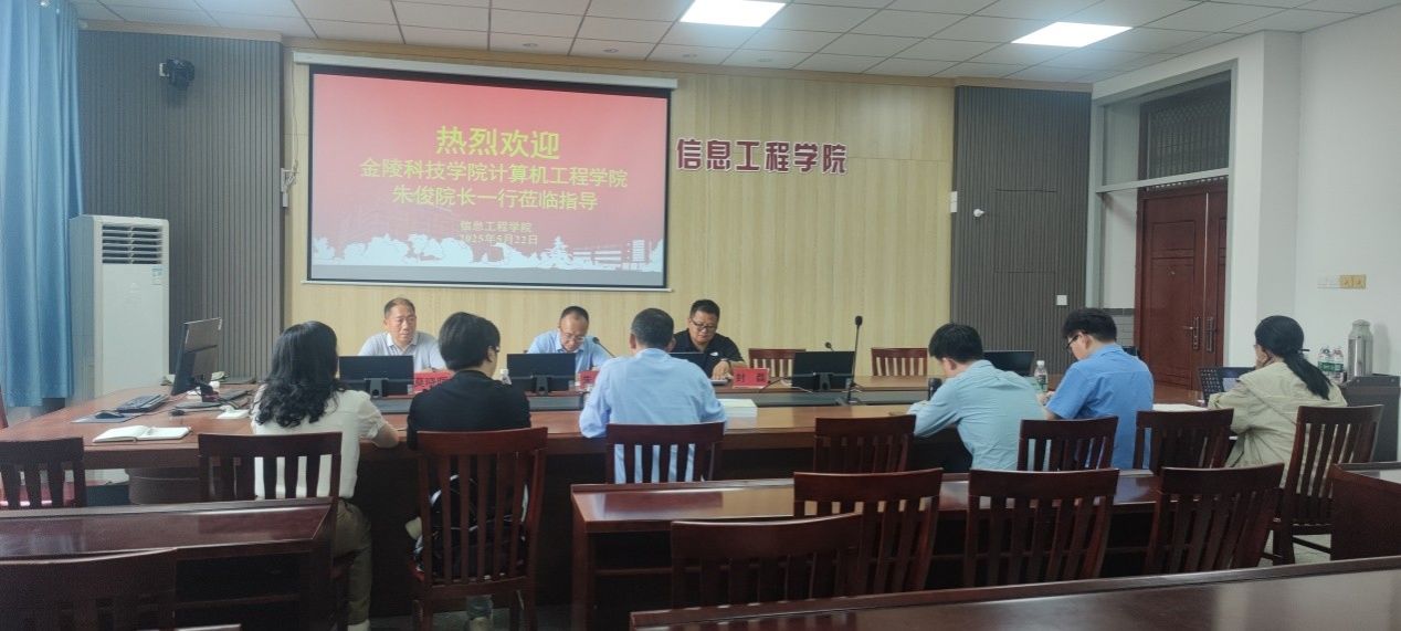 盐城工学院信息工程学院院长王如刚热情接待了朱俊一行。王如刚和朱俊就各自学院的发展历史、办学条件、师资队伍、学科建设等进行了简要的介绍。两院教师代表针对国一流专业建设、工程教育认证、人才培养方案修订、产教融合专业建设、硕士培养等进行了专项交流。