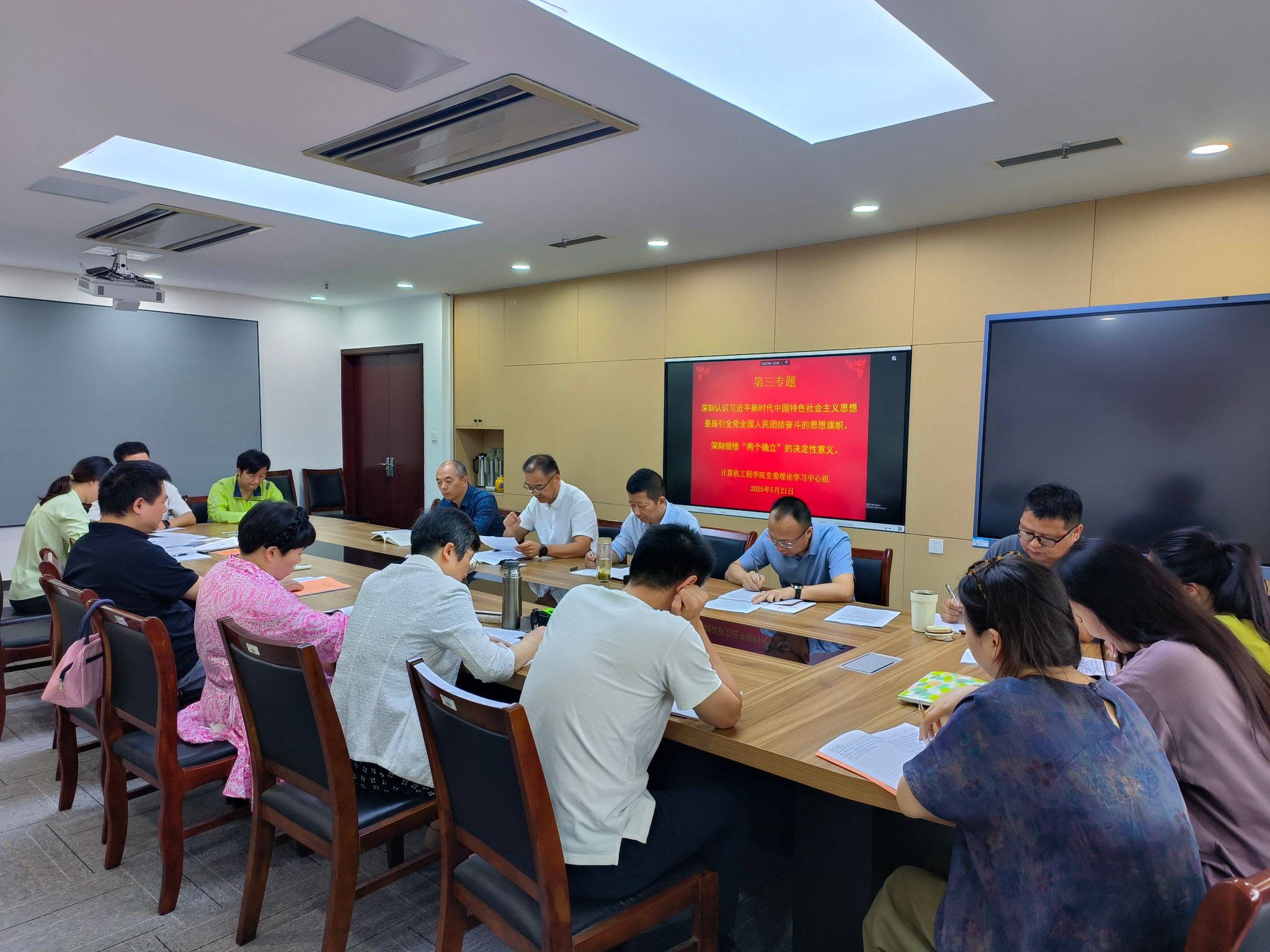 根据《中共成人视频 委员会关于2025年党委中心组理论学习的安排意见》精神,按照《成人视频 党委中心组2025年全年学习计划》要求,成人视频 党委于5月21日上午在科技楼2-523会议室开展2025年第三次中心组学习,此次学习主题为“深刻认识习近平新时代中国特色社会主义思想是指引全党全国人民团结奋斗的思想旗帜”和“深刻领悟‘两个确立’的决定性意义”。学院党委书记陈冠亚主持学习。