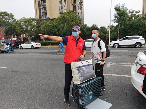 27日一早,教师志愿者们身穿红马甲,精神抖擞开展工作。在校东门口引导新生进校,帮助他们将行李搬运上车。过程中与新生和家长们亲切交谈,回答他们的各类问题、消除他们的不安情绪。在校园中处处可以看到志愿者忙碌的身影、经过他们热情耐心的讲解和指引,2021级新生通过查验通道很快地进入校园、住进宿舍,工作有条不紊,忙而有序。教师红马甲成为迎新现场一道亮丽的风景线。