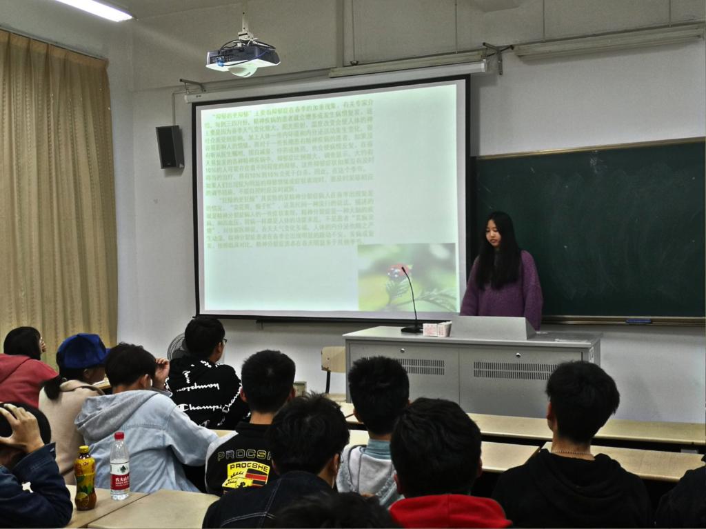 在3月20日至3月27日之间,学院组织各班级开展了以“健康心理与教育”为主题的班会。以班级为单位安排主讲人,各班主任全程参加。主讲人向全班同学宣传心理健康知识,让同学们在这躁动的季节减轻压力,并推荐了丰富多样的活动让同学们走出寝室、放下手机和电脑,增进同学间的交流、沟通与合作,愉悦心情,减少心理问题的发生。