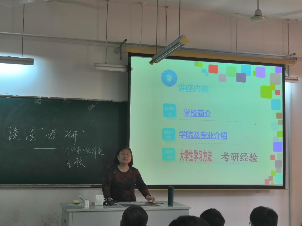 举办“教授面对面”活动,引导学生走近考研,规划大学学业。活动主讲人为我院学业指导导师王预副教授和王晖同学等三位考研拟录取的大四学生。学院有意愿考研的70余名同学参加了本次活动。