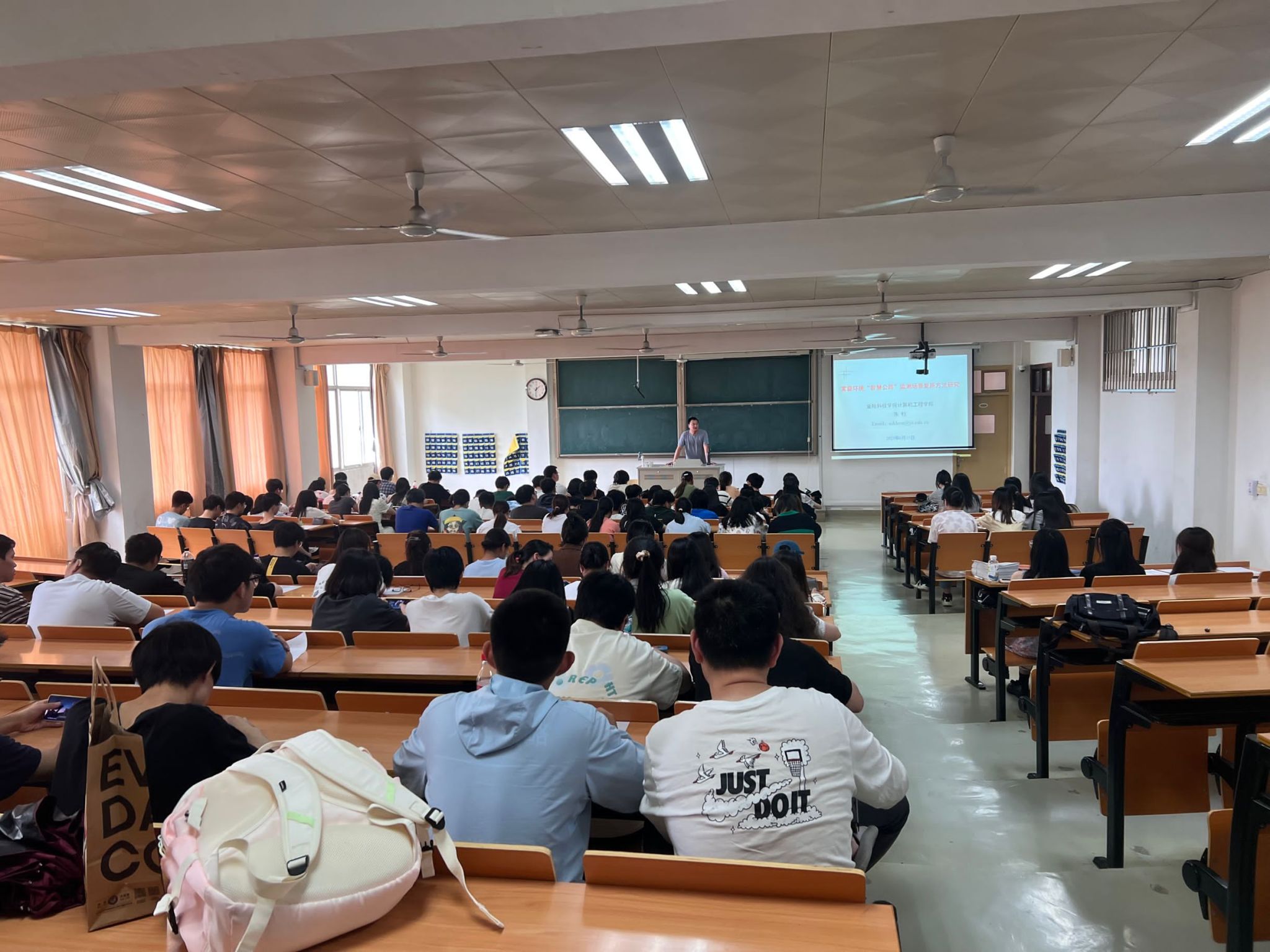 活动现场气氛热烈,同学们纷纷结合专业所学,提出问题。 比如“交通监测在智慧公路上起着什么样的作用?”、“图像去雾的研究方式需要哪些技术上的支持?”等。朱教授一一耐心进行了解答,参会的同学纷纷表示受益匪浅。