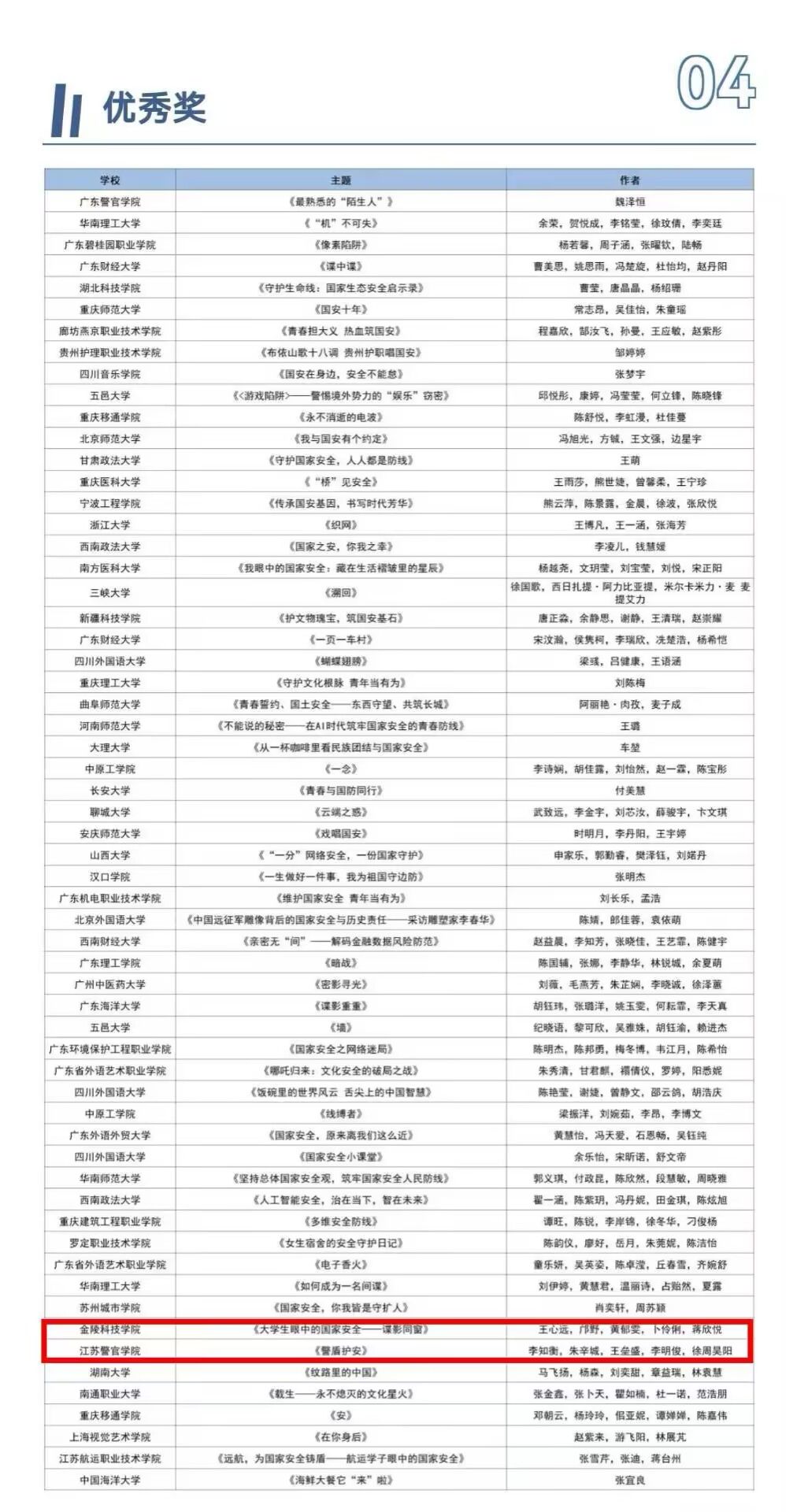 近日,由国家有关主管部门、教育部思想政治工作司、全国学校国家安全教育指导委员会担任指导单位,北京师范大学、广东省国家安全人民防线建设工作办公室为主办单位的第二届全国大学生《我眼中的国家安全》短视频大赛评审结果正式公布。由成人视频 张昊副书记指导,学生王心远、邝野、黄郁雯等原创的《大学生眼中的国家安全—谍影同窗》荣获优秀奖。本次活动得到了全国280余所高校师生的热烈响应和积极参与,共征集到参赛视频一千余件。此次获奖充分展现了我院学子关心国家发展、心系民族命运的精神风貌和优秀的艺术创作能力。