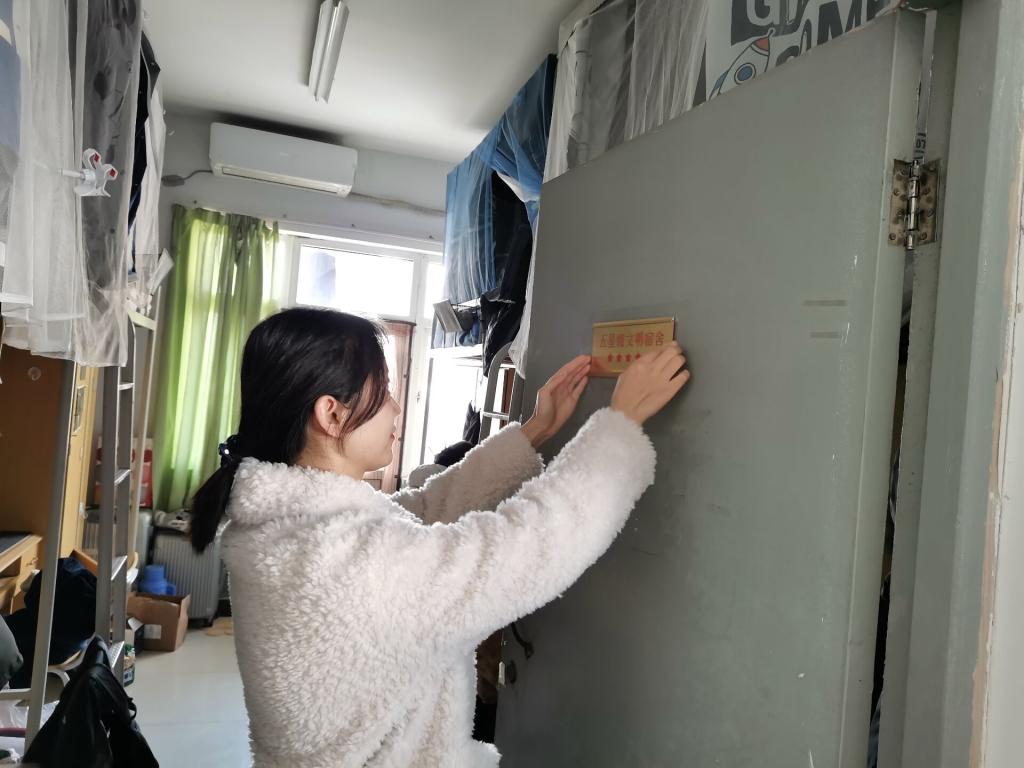 全体辅导员为学院星级文明宿舍进行挂牌。