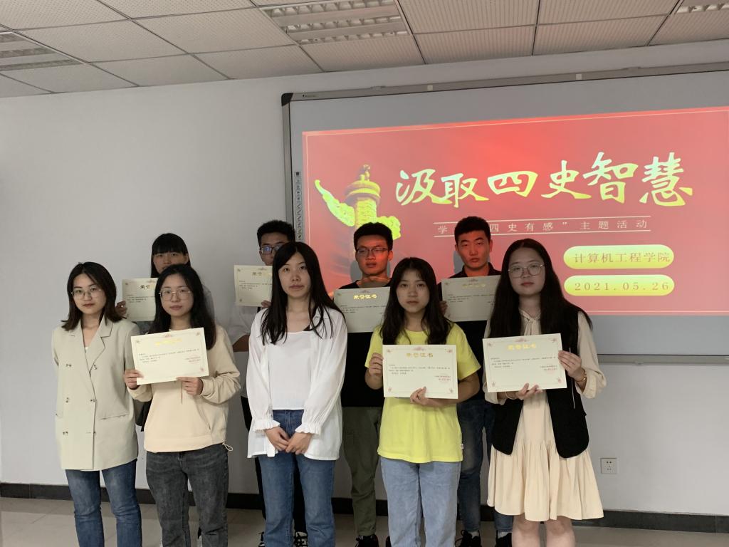 经评审,18计算机科学与技术单招班曾慧、19计算机科学与技术统招2班秦望全获心得感受类作品优秀奖;20数字媒体技术班文欢获采访视频类作品优秀奖;20计算机科学与技术统招2班刘俊齐、19计算机科学与技术统招2班王松获绘画书法类作品优秀奖; 19计算机科学与技术单招班巫思怡获朗诵类作品优秀奖。